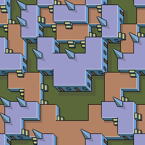Campus symmetrical layoutThis is how a campus building would look if built symetrically using 3 levels. As the edges wrap, it can tile any area seamlessly. |